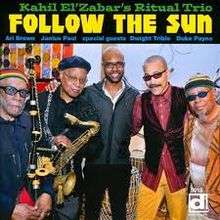Follow the Sun is an album by American jazz percussionist Kahil El'Zabar, which was recorded in 2013 and released on Delmark. He leads his Ritual Trio with saxophonist Ari Brown and bassist Junius Paul, augmented by special guests vocalist Dwight Trible and Duke Payne on second tenor sax and bagpipes.[1]