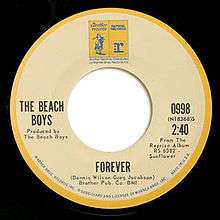 "Forever" is a song written by Dennis Wilson and his close friend Gregg Jakobson. It was released in 1970 as the ninth track on the Beach Boys' Sunflower album. The song, along with the rest of the album, was produced by the Beach Boys.