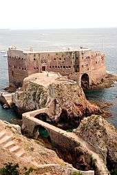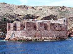 King Manuel of Portugal ordered the construction of a fortress on Berlenga Grande in 1502, which was immediately rectified under the reign of King Sebastian of Portugal.[1][2] The fort, was constructed from the remains of a pre-existing monastery (the Monastery of the Misericórdia da Berlenga) which had previously been abandoned. Hieronymite monks had in the early 16th century, decided that the Berlengas were well situated to provide aid for seafearing people in need of shelter.[3] The islands isolation also provided ideal conditions for the monks to live in austerity through solitude and silence, assiduous prayer and healthy penance. But, the monks became victims of frequent attacks by Algerian, Moroccan, English, and French pirates and privateers. Further, violent weather often cut-off communication to the mainland, which was especially distressing during pirate incursions, as result, the Monastery was abandoned.