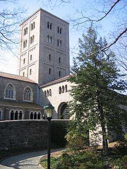 Rockefeller also bought sculptor George Gray Barnard's collection of medieval art and gave to the Metropolitan Museum of Art, which from 1934 to 1939 built The Cloisters in Fort Tryon Park to house it.[1] The Cloisters, which was designed by Charles Collens, incorporates several medieval buildings that were purchased in Europe, brought to the United States, and reassembled, often stone by stone. It is home to the Unicorn Tapestries.