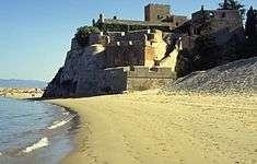 The multi-tiered battlements and barbicans, as seen from Praia Grande beach