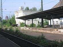 Platforms at Frankfurt East stations; a World War II bunker is in the background