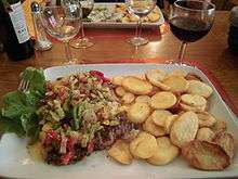Creole cuisine blends flavors of tropical products Amazonian many from the forest as cassava, awara the comou and game. But many dishes have their roots deep in Africa, Asia, India and Europe. What gives it that spicy and subtle flavor. On the local market, instead of obligatory passage, the Creole merchant advise and make taste their products. This ranges from couac, cassava flour, essential for the realization of fierce lawyer, which draws all its power from the cayenne pepper. The cassava, long reserved for the poor, becoming a sought-after commodity, it is used in the stuffed restaurants in the cod chiquetaille or sweetened either with coconut jam, or with grated coconut or guava paste. As for cod fritters, which consume a starter or an aperitif, they accompany the famous Ti' Punch.[1]