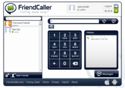 FriendCaller /ˈfreɪndkaʊəlr/ is a Video and Voice over Internet protocol developed by C2Call GmbH based in Werl, Germany.[1] Its proprietary Voice-Over-Internet technology was originally created by Michael Knecht and Martin Feuerhahn.[2] It was a first prototype developed by Actai Networks GmbH in 2007; the technology was then transferred to C2Call GmbH[3] in 2008.[4] Later on, FriendCaller was launched in 2009[5] as a website and as an iOS (iPhone, iPad, iPod touch) app.[6] FriendCaller establishes peer-to-peer connectivity[7] and allow users to communicate one-to-one or in groups via Video Chat, Voice over IP, Instant messaging, Texts/SMS, and phone calls.[8]