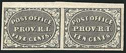 - Providence (copperplate, twelve subjects: eleven 5¢ stamps, one 10¢ stamp)