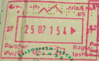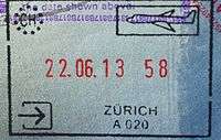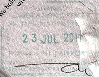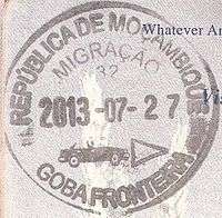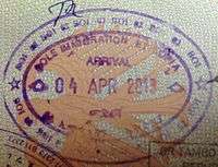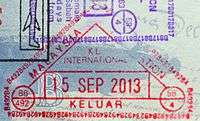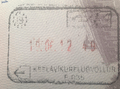 - ↑ New style airport entry stamp. A similar style will likely soon replace road entry stamps.