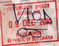 Old style South African entry stamp. This style is still current for road entry.