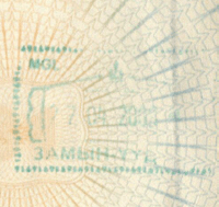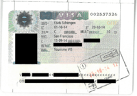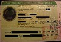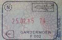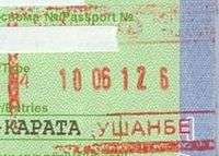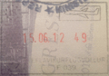 - ↑ The date, duration and coat of arms are stamped/written separately by border officials. There is no difference in design between entry or exit stamps.