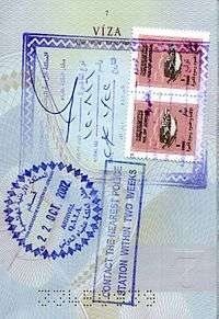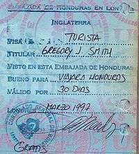 - ↑ Paraguay requires citizens of many countries to obtain a visa before entering the country (pictured left). This can generally only be acquired at a Paraguayan Embassy or upon arrival at ASU Airport.