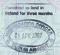 Ireland immigration stamp issued at Dublin Airport
