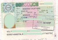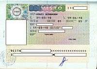 The gallery of passport stamps by country or territory contains an alphabetical list of sovereign states or dependent territories with images of their passport stamps including visas. All countries in the Schengen Area use the same format for their stamps, and stamps are not issued while traveling from one country to another within the area, even in the case of temporarily re-introduced border controls.