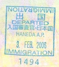 - ↑ Australia no longer issues departure stamps for any passport holder unless requested. Entry stamps are still given to non-Australian passport holders and on request for Australian passport holders. Australia is using an electronic visa system, so there is no more labeling of a visa stamp in a passport.
