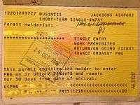 - ↑ Transit stamp. No exit stamp is issued for transit visas.