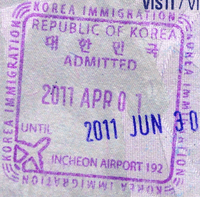 Exit stamp for South Korea- Old style entry stamp from Denmark