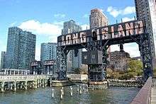 Gantry Plaza State Park is a 12-acre (4.9 ha) state park[1] on the East River in the Hunters Point section of Long Island City, in the New York City borough of Queens. The park is located in a former dockyard and manufacturing district, and includes remnants of facilities from the area's past.