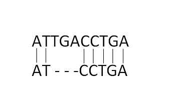 The notion of a gap in an alignment is important in many biological applications, since the insertions or deletions comprise an entire sub-sequence and often occur from a single mutational event.[4] Furthermore, single mutational events can create gaps of different sizes. Therefore, when scoring, the gaps need to be scored as a whole when aligning two sequences of DNA. Considering multiple gaps in a sequence as a larger single gap will reduce the assignment of a high cost to the mutations. For instance, two protein sequences may be relatively similar however, may differ at certain intervals as one protein may have a different subunit compared to the other. Representing these differing sub-sequences as gaps will allow us to treat these cases as “good matches” even though there are long consecutive runs with indel operations in the sequence. Therefore, using a good gap penalty model will avoid low scores in alignments and improve the chances of finding a true alignment.[4]
