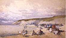According to his friend, the great war correspondent Frederic Villiers: "I never met a man who was so rapid with brush and colours in transferring an impression to his canvas. His memory is so marvellously correct that one may watch him produce, within an hour or so, a sketch of a Dutch market-place with its greyness of atmosphere, a street in Bruges with the architectural beauty of its cathedral and houses, or a suburb in Tangier with its mosques and minarets glowing in the heat against a deep purple sky, as accurate in tone and drawing as if he had been seated in front of his subject."[3]