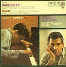 Beethoven: Concerto No. 2 in B flat Major for Piano and Orchestra, Op. 19 - Bach: Concerto No. 1 in D Minor for Piano and Orchestra is the third album of the Canadian classical pianist Glenn Gould. It contained a 1957 recording of Ludwig van Beethoven's second Piano Concerto and Johann Sebastian Bach's Keyboard Concerto BWV 1052, with Leonard Bernstein conducting the Columbia Symphony Orchestra.