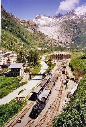 Gletsch railway station is a metre gauge railway station serving the village of Gletsch, in the Canton of Valais, Switzerland.