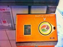 The go card is an electronic smartcard ticketing system developed by Cubic Corporation and currently used on the TransLink public transport network in South East Queensland. To use the go card users hold the card less than 10 cm away from the reader to "touch on" before starting a journey, and must do the same to "touch off" the service at the end of the journey. The cost of each journey is deducted from the go card balance.