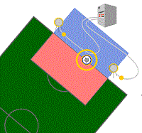 GoalRef features a passive electronic circuit embedded in the ball and a low-frequency magnetic field around the goal. Any change in the field on or behind the goalline is detected by coils embedded in the goal frame, which determine the scoring of a goal.[34] By producing low magnetic fields around the goals, GoalRef creates the radio equivalent of a light curtain. As soon as the ball has wholly crossed the goal line between the posts, a change in the magnetic field is detected. A goal alert is then instantaneously transmitted to the game officials using an encrypted radio signal, with a message displayed on their wristwatches.[35]
