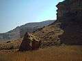 Golden Gate Highlands National Park is located in Free State, South Africa, near the Lesotho border. It covers an area of 340 km2 (130 sq mi).[1] The park's most notable features are its golden, ochre, and orange-hued deeply eroded sandstone cliffs and outcrops,[2] especially the Brandwag rock.[3] Another feature of the area is the numerous caves and shelters displaying San rock paintings.[4] Wildlife featured at the park includes mongooses, eland, zebras, and over 100 bird species. It is the Free State's only national park, and is more famous for the beauty of its landscape than for its wildlife.[5] Numerous paleontology finds have been made in the park including dinosaur eggs and skeletons.