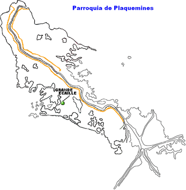 Location of Grande Ecaille within Plaquemines Parish, Louisiana.