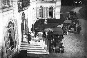 Minister for War Alexandre Millerand arriving at the Chantilly Grand Quartier Général building in February 1915 | |