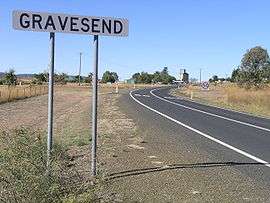 Gravesend is a village on the North West Slopes of New South Wales, Australia. The town is located 25 km west of Warialda on the Gwydir Highway near the Gwydir River and in the Gwydir Shire local government area, 615 kilometres (382 mi) north of the state capital, Sydney. At the 2006 census, Gravesend and the surrounding area had a population of 276.[1] The village is situated at an elevation of approximately 275 metres (904 feet).