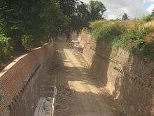 The Lines are known as a 'Bastion trace fortification', a linear defence with projecting bastions allowing covering fire to be directed into the ditches (on the landward side of the fort) flanking them. In England, they were relatively rare, and were principally adopted for dockyard and coastal defences.[2] They stretch from Fort Amherst (overlooking Chatham Dockyard and River Medway), northwards across Brompton towards St Mary's creek near Gillingham.