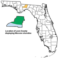 Leon County, Florida displaying Miocene shoreline according to the Florida Geologic Survey.