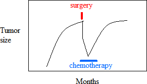 In the example shown in Figure 2, a tumor is found after the cell growth rate has slowed. Most of the cancer cells are removed by surgery. The remaining cancer cells begin to proliferate rapidly and cancer chemotherapy is started. Many tumor cells are killed by the chemotherapy, but eventually some cancer cells that are resistant to the chemotherapy drug begin to grow rapidly. The chemotherapy is no longer useful and is discontinued.