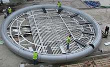 The dials of each clock are made of "Bri-Curtain" LED arrays formed of aluminium, designed to both save weight and offer less resistance to wind.[2] Each set of dial markers, 12 markers per dial, is illuminated with light-emitting diodes (LED).