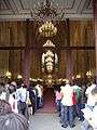 Since its completion in 1888, the cathedral has undergone three major repairs. The first time was in the 1920s and 1930s, when then Bishop Antoine-Pierre-Jean Fourquet, M.E.P. (魏暢茂), replaced the timber roof, beams and steel staircases with concrete ones. A second repair took place after the Cultural Revolution in the 1980s. Recently between 2004 and 2006 the largest repair works were carried out. The church paid ¥3 million and local Catholics donated about ¥2 million for the ¥26 million project, while the rest was covered by the local government. The aim of the restoration was to solve the problem of leakage by rebuilding the whole roof, which was the most challenging task as the rib vault below needed to remain untouched and intact. Most of 19th century stained glass was damaged during wartime and smashed in the Cultural Revolution, so new stained glass was ordered from a Philippine company specialising in church glass.[6] It resulted in the new stained glass carrying English descriptions instead of Latin and French texts of the original French glass. New lighting, audio and CCTV systems were also installed. The original French mechanical clock has long gone, so a new 750,000-yuan clock tailored for the clock tower was ordered from a Chinese clock factory.[6]