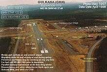 Gulkana Airport (IATA: GKN, ICAO: PAGK, FAA LID: GKN) is a state owned, public use airport located four nautical miles (5 mi, 7 km) northeast of the central business district of Gulkana,[1] in the Valdez-Cordova Census Area of the U.S. state of Alaska. It is also and five miles (8 km) northeast of Glenallen. Scheduled passenger service is subsidized by the Essential Air Service program.