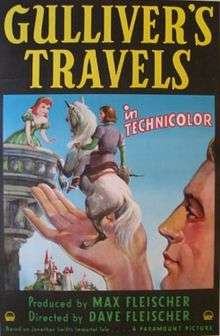 Gulliver's Travels is a 1939 American cel-animated Technicolor feature film, produced by Max Fleischer and directed by Dave Fleischer for Fleischer Studios about an explorer who helps a small kingdom who declared war after an argument over a wedding song. The film was released to cinemas in the USA on December 22, 1939[2] by Paramount Pictures, which had the feature produced in response to the success of Walt Disney's box-office hit Snow White and the Seven Dwarfs. The sequences for the film were directed by Seymour Kneitel, Willard Bowsky, Tom Palmer, Grim Natwick, William Henning, Roland Crandall, Thomas Johnson, Robert Leffingwell, Frank Kelling, Winfield Hoskins, and Orestes Calpini. This is Fleischer Studios' first feature-length animated film.