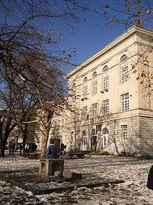 The school's impressive building was built in 1930. It has a modern sports hall, a ceremonial hall, a library (with a reading room and a multimedia hall) and a bookstore.