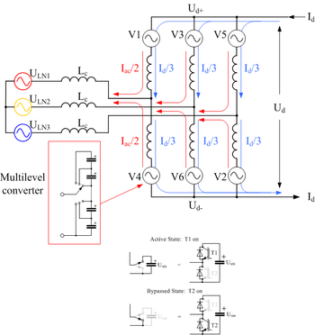 ![]() Three-phase Modular Multi-Level Converter (MMC) for HVDC. |