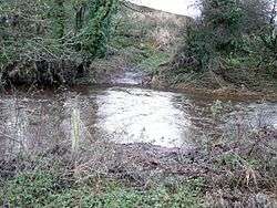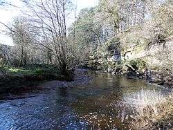 Haining Place or The Haining in the Parish of Kilmarnock lies near an old fording place across the Cessnock Water in East Ayrshire, Parish of Riccarton, Scotland. Hanyng (sic) was the caput or laird's dwelling of the Barony of Haining-Ross[1] with a tower house or keep located in a defensive position on a high promontory of land, half encircled by the river. Later Haining Place was a tenanted farm, finally finally being used as farm workers accommodation. Haining Place is now a ruin following a fire. The old farm of Haining Mains is still located nearby.