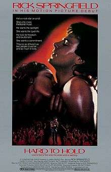 Hard to Hold is a 1984 musical drama film directed by Larry Peerce. It was meant as a starring vehicle for Rick Springfield, who had a solid television acting resume and a blossoming rock-pop career, but had yet to break out in feature films. It stars Springfield, Janet Eilber and Patti Hansen. The film features many Springfield songs which are included on the soundtrack to the film.