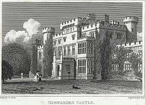 (New) Hawarden Castle (Welsh: Castell Penarlâg (Newydd)) is a house in Hawarden, Flintshire, Wales. It was the estate of the former British Prime Minister William Ewart Gladstone, having previously belonged to the family of his wife, Catherine Glynne.[1] Built in the mid-18th century, it was later enlarged and externally remodelled in the Gothic taste.