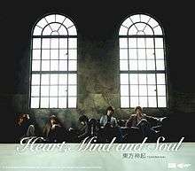 Heart, Mind and Soul is the debut Japanese studio album (third overall) by South Korean pop group Tohoshinki, released on March 22, 2006 by Rhythm Zone. It was released in two physical versions: a CD only version, which includes bonus tracks; and a CD+DVD version, which includes a track list of PVs. The album debuted on the Oricon Albums Chart at number 22, selling 18,000 copies.