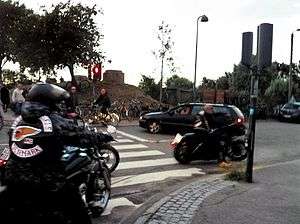 Conflicts between youth gangs from the Copenhagen districts of Amager Vest, Amager Øst and Nørrebro started to occur in the early 1970s and by the late 1970s, the Galloping Goose, Nomads, Iron Sculls and Dirty Angels motorcycle clubs united as Unionen MC before applying for membership of the Hells Angels.[114] The former Unionen officially became the first Scandinavian Hells Angels chapter on December 30, 1980, setting up chapters in Copenhagen's Titangade and Nørrebro districts. Shortly thereafter, the Filthy Few, an Amager-based club, merged with the Nøragersmindebanden to form Bullshit MC, settling in Freetown Christiania where they benefited from the trade in cannabis products and challenged the Hells Angels for control of Copenhagen's biker scene.[115] The two clubs would wage war against each other between September 1983 and December 1985. The Copenhagen biker war began on September 24, 1983 when three Bullshit members and a woman entered the Søpromenaden restaurant, a known Hells Angels hangout, at Dag Hammerskjolds Alle 37. Two of the three Bullshit members, Søren Grabow Grander (November 25, 1962 – September 24, 1983) and Flemming Hald Jensen (April 4, 1962 – September 24, 1983) were killed in a bottle and knife attack. Hells Angels member Bent "Blondie" Svane Nielsen was convicted for the murders.[116] In November 1983, Bullshit president Henning Norbert "Makrellen" Knudsen (January 15, 1960 – May 25, 1984) was interviewed on the live television show Mellem Mennesker ("Between Humans"), which aired on DR TV, and stated that he would not allow an American motorcycle club such as the Hells Angels to gain control in Denmark.[117][118] Knudsen was shot and killed with a machine gun in front of his wife Pia outside their home on May 25, 1984. At the time of his death, Knudsen and other Bullshit members were the prime suspects for the double murder of two young men (aged 16 and 20) in Amager six days before. A Yugoslavian immigrant would later be convicted of those murders, however.[119] Three Hells Angels were convicted for their part in Knudsen's killing; Jens-Peter Kristensen was sentenced to twelve years in prison, and Christian Middelboe was sentenced to seven years, both for aiding Jørn "Jønke" Nielsen who carried out the shooting. Nielsen fled to Canada but was apprehended and extradited back to Denmark in 1989 where he served sixteen years in prison for the murder.