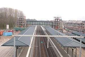 Helmond Brandevoort is a railway station in Brandevoort near Helmond, Netherlands. The station opened on 10 December 2006 and is on the Venlo–Eindhoven railway. The building work was not completed and finally finished on 15 June 2007.