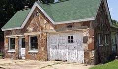 The service station was built of fieldstone in 1938[3] to a design by Courtney Nichols. It was registered as a Historic Place in 1991.[4]