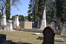 The Church Street Cemetery is located on the corner of Church Street and DF Malan Drive in Pretoria.[2] The central part of this historic cemetery is known as The Heroes Acre. The cemetery is a vast green field filled with tombstones of diverse shapes and styles which are organized in rows. As this is a Christian cemetery, the graves are oriented facing east. Trees and shrubbery give the cemetery a calm feel. The silver crosses in The Heroes' Acre are significant and distinctive of the cemetery.