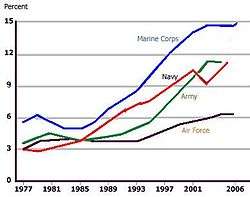 - ↑ "Hispanics in the U.S. Military"; Latinos Claim Larger Share of U.S. Military Personnel; by Mady Wechsler Segal and David R. Segal; publisher:PRB.org, March 23, 2009