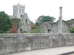 In 1094 a chief minister of William II, Ranulf Flambard, then Dean of Twynham, began the building of a priory on the site of the original mission church.[11][18] Local legend tells that Flambard originally intended the church to be built on top of nearby St. Catherines Hill but, during the night, all the building materials were mysteriously transported to the site of the present priory. This 'miracle' is cited as one of the reasons the town became known as Christchurch.[19] On 28 November 1539, John Draper the last prior of Christchurch, surrendered the priory, and it was dissolved.The monastic buildings of the priory were pulled down soon after the dissolution. The King had intended to pull down the church as well as the monastic buildings, but in response to a plea from the townspeople, supported by Prior Draper, he granted the church together with the churchyard to the churchwardens and inhabitants of Christchurch to be used as the parish church in perpetuity on 23 October 1540, a grant that was confirmed on 12 February 1612 by James I. The town is fortunate that the Christchurch Priory cartulary, which consists of over 1,300 documents and charters copied and collated in the 14th century, with a few later additions, has survived to provide a comprehensive account of the Priory and events connected to it during the medieval period. A full translation was published in 2007.[20] The evolution of the Priory into the building it is today took place over many centuries: The nave and transepts are Norman with heavy columns and round arches, whereas the lady chapel is from the 14th century and more Perpendicular in style. The great choir is even later, having been rebuilt in the 16th Century. The Priory is noted for its Miraculous Beam, which attracts pilgrims from all over the world.[7] From the reign of Edward I, after mass on Sundays, the church wardens supervised the archery practice that all men were obliged to undertake. This event took place on a piece of unconsecrated land between the north porch and transept. The requirement for the men of the town to practise archery continued until Tudor times.[21]