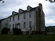 Early settlers of property tended to recreate the familiar structures of eastern Virginia, building Georgian and Federal homes on large estates. The counties of the eastern panhandle, especially Jefferson and Berkeley, were the most reminiscent of eastern Virginia. Many prominent families, such as the Washingtons, Fairfaxes and Lees, had properties here. In 1817 Col. John Fairfax of Preston County began the construction of his mansion, Fairfax Manor, with the aid of his sons and 30 slaves. The old log homes on the estate, formerly the residences of Col. Fairfax and his family, became the slave quarters.[2] In 1836 David Gibson began construction of Sycamore Dale in Romney, Hampshire County, with the aid of 100 slaves.