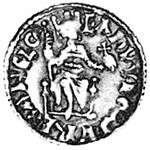 | O: Circle containing small central cross. +EADVVEARD REX | R: City gate. +VVLFSIGE |